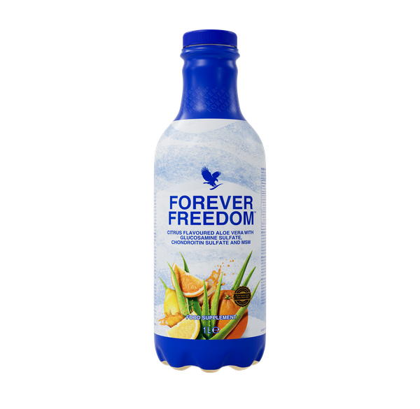 Το Forever Freedom® είναι ένα καθημερινό ρόφημα, σχεδιασμένο να στηρίζει τον δραστήριο τρόπο ζωής σου. Συνδυάζει το καθαρό ζελέ του εσωτερικού φύλλου αλόης βέρα της Forever με τρία βασικά συστατικά: θειική γλυκοζαμίνη, θειική χονδροϊτίνη και μεθυλο-σουλφονυλο-μεθάνιο (MSM). Αυτά τα συστατικά, που υπάρχουν φυσικά στον αρθρικό χόνδρο και στους συνδετικούς ιστούς, συμπληρώνουν έναν ισορροπημένο τρόπο ζωής και υποστηρίζουν τη συνολική σας ευεξία.Τώρα με νέα και βελτιωμένη φυσική γεύση εσπεριδοειδών από λεμόνι και πορτοκάλι, με σύνθεση χωρίς οστρακοειδή, το Forever Freedom® διατίθεται σε πρακτική υγρή μορφή, σχεδιασμένη για καθημερινή χρήση. Στηρίζει τη γενική ευεξία.ΣΥΝΟΠΤΙΚΑ• Ανανεωμένη γεύση εσπεριδοειδών – δροσερός συνδυασμός λεμονιού και πορτοκαλιού για υπέροχη γεύση• Ιδανικό για έναν δραστήριο τρόπο ζωής – ειδικά σχεδιασμένο με συστατικά που ενισχύουν την ενέργεια και την ευεξία• Με ζελέ από το εσωτερικό φύλλο της αλόης βέρα – γνωστό για τις φυσικές καταπραϋντικές και θρεπτικές του ιδιότητες• Τώρα χωρίς οστρακοειδή – κατάλληλο για άτομα με διατροφικές ευαισθησίες ή αλλεργίες•Χωρίς γαλακτοκομικά•Χωρίς Σόγια•Χωρίς Γλουτένη