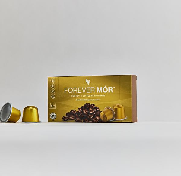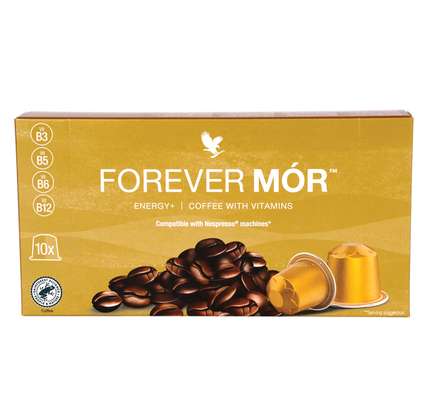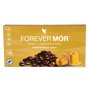 Ένας λειτουργικός καφές που περιέχει ταυρίνη και είναι εμπλουτισμένος με βιταμίνες Β3, Β5, Β6 και Β12 υποστηρίζει τόσο την σωματική όσο και την πνευματική σας απόδοση* για να ανταπεξέλθετε στις απαιτήσεις της ημέρας.  Συμβατές με αυθεντικές μηχανές Nespresso®**, οι κάψουλες Forever MÓR™ συνδυάζουν κόκκους καφέ arabica και robusta για να δημιουργήσουν ένα τολμηρό μείγμα με πλούσιες σοκολατένιες νότες και ζωηρό τόνο. Είναι η τέλεια επιλογή για απαιτητικούς λάτρεις του καφέ που αναζητούν περισσότερα από ένα φλιτζάνι καφέ. Tροφοδοτήστε την ημέρα σας με το Forever MÓR™ και αποκτήστε ένα δυνατό ξεκίνημα στο πρωινό σας.Συνοπτικά· Λειτουργικός καφές με πλεονεκτήματα πέρα από καφεϊνη· Οι βιταμίνες B3, B5, B6 και B12 υποστηρίζουν τα φυσικά επίπεδα ενέργειας*· Εμπλουτισμένος με ταυρίνη· Κόκκοι καφέ Arabica και robusta που προέρχονται από τη Νότια Αμερική, την Κεντρική Αμερική και την Ασία· Φυσική καφεΐνη συν 16 mg προστιθέμενης καφεΐνης• Δεν περιέχει γαλακτοκομικά• Χωρίς σόγια• χωρίς γλουτένη• Κατάλληλο για vegan• Κατάλληλο για χορτοφάγους